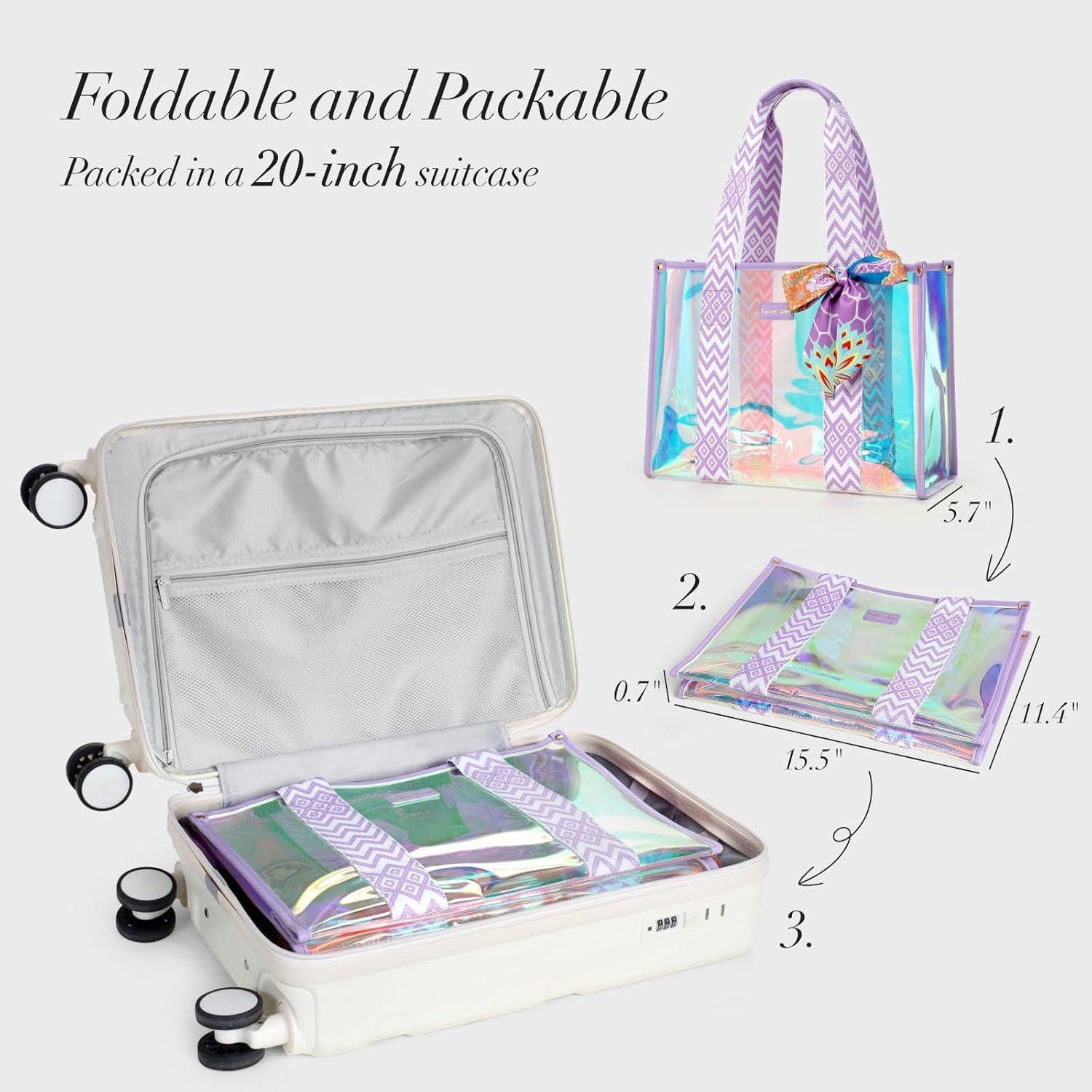 F-color Iridesent Beach Bag for Women – Waterproof Beach Tote Clear Pool Bag with Phone Pouch for Cruise Vacation Essentials(16l Iridescent Purple)
