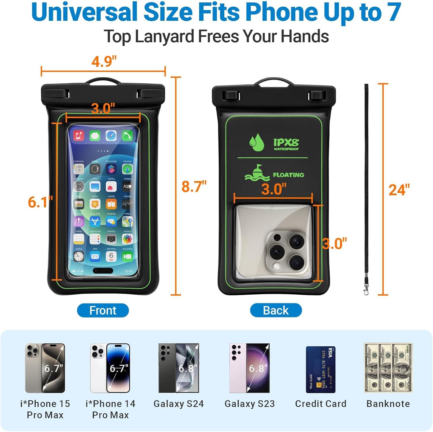 Compact Size & Top Lanyard – 8.7 x 4.9 inches, Compatible for phone up to 7 inches; ideal cruise essentials phone water protector pouch for iPhone 15 Pro Max Samsung Galaxy S24; Sturdy lanyard on the top for easy carrying; Free your hand and have fun!