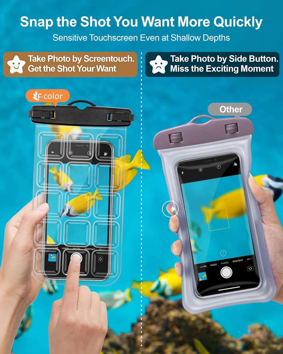 Quick Capture – Unlike other waterproof phone cases that require pressing a button to take photos underwater, this touchscreen-friendly waterproof case allows you to quickly and easily snap the shots you want while submerged