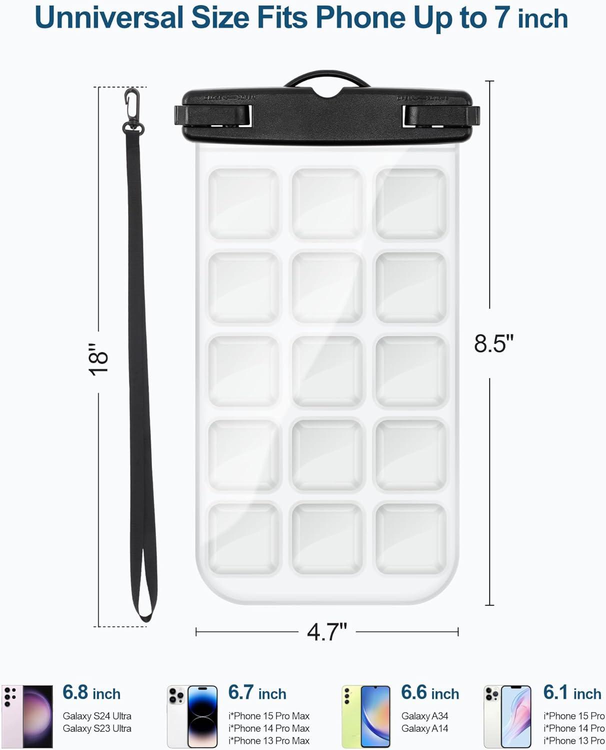 Compatible Size – 7.48 x 4.6 inch, Compatible for phone up to 7 inches; It's an ideal cruise ship essentials waterproof cell phone pouch for iPhone 15 14 13 12 11 Pro Max Samsung Galaxy S23 S24