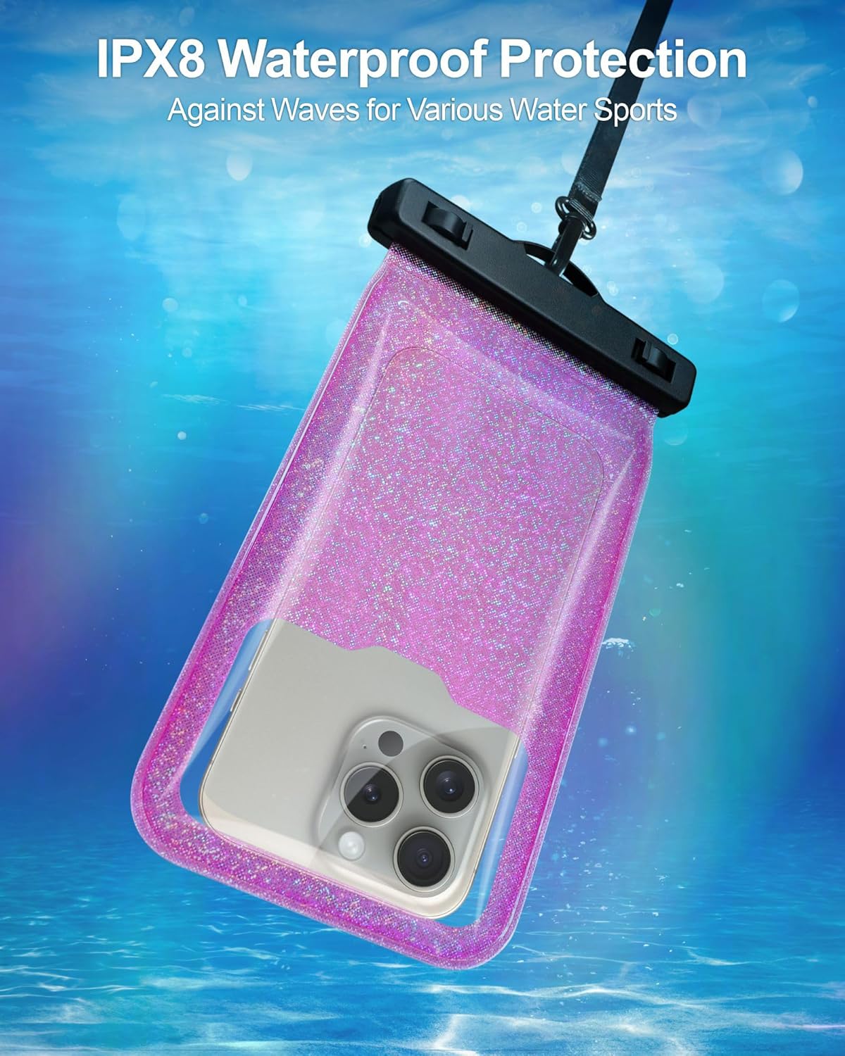 Vacation Essentials for Aquatic Sports – The cell phone waterproof pouch for swimming can not only use for beach trip; Great waterproof bag function can be used as dry bags for underwater snorkeling, surfing, boating or skiing