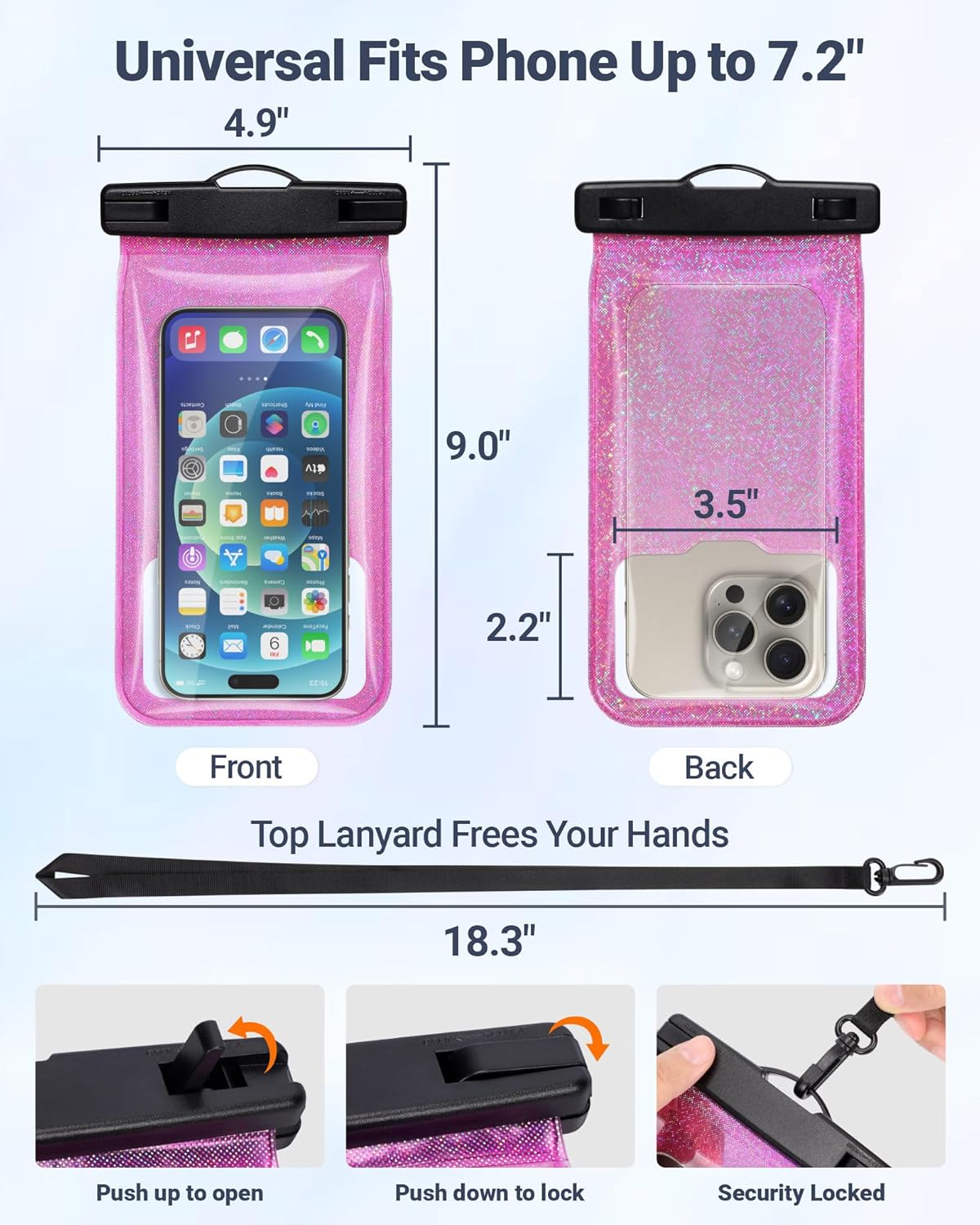 Compatible Size – Length x Width: 170mm x 100mm, Compatible for phone up to 7.2 inches; ideal phone water protector pouch for iPhone 14 13 12 11 Pro Max XS Plus Samsung Galaxy S9 S10; Sturdy lanyard on the top for easy carrying; Free your hand and have fun!